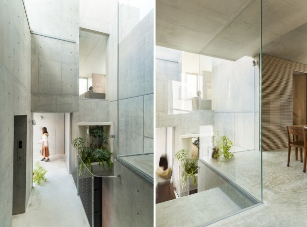 Hirata first met her client Taka Ishii, who owns three eponymous art galleries - two in Tokyo and one in New York. Ishii was tired of white cube space. His office was a white cube, his gallery too, just like the museums he visited. So, he wanted something completely different for his house. And he thought that Hirata could conceive something for him. Hirata did not disappoint. The house consists of several floors, including an exhibition space on the ground floor and the private part on the other levels. The building is made of an organic stratification system that intertwines boxed spaces with many voids cut into these boxes, creating indoor and outdoor spaces and gardens.