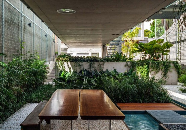 The architects have designed this house as a dialogue with its surroundings, the spaces are open and the natural light floods virtually all parts of the house. The architects wanted to prove that it was possible to have a place to vacation and rest, even in a huge city like Sao Paulo.
