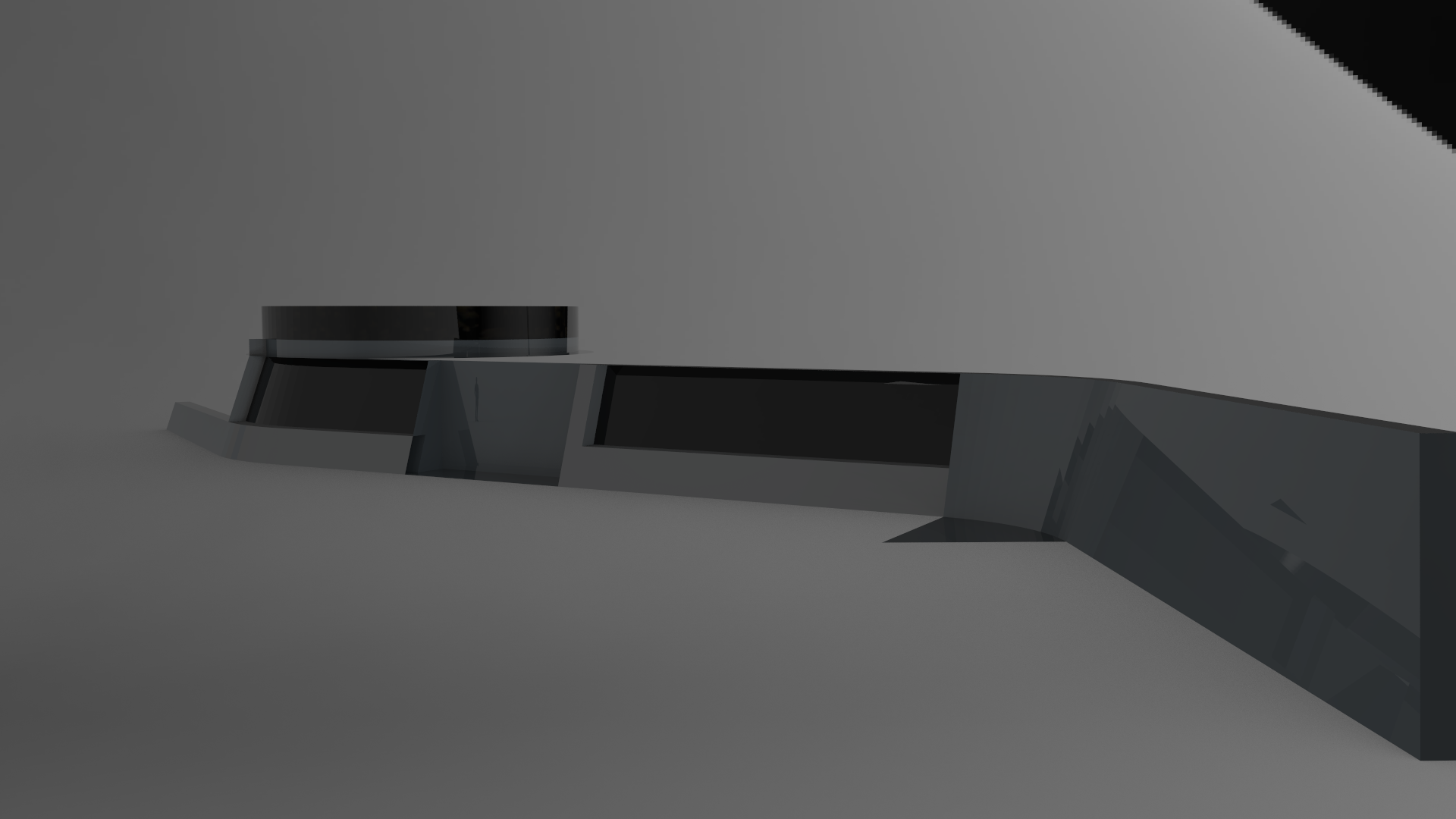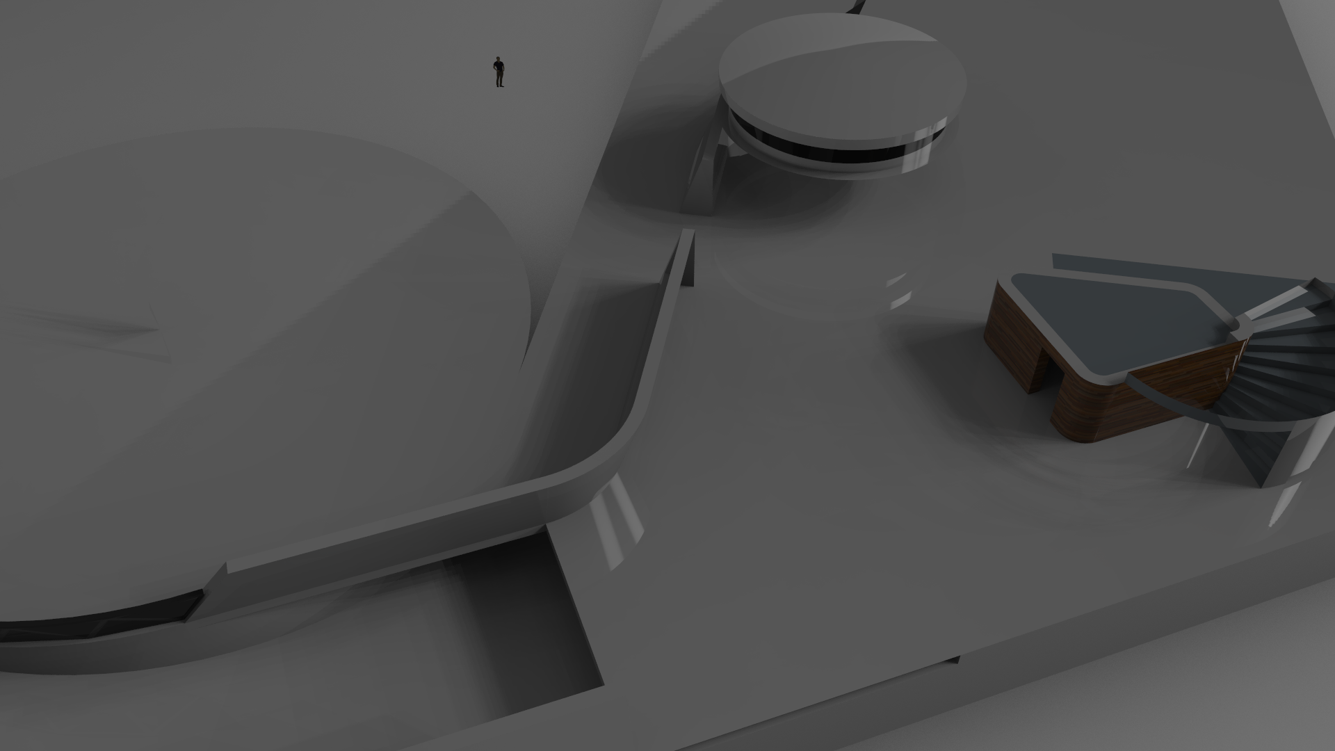 Of course, the house should have a large, underground garage, so I spent a lot of time modelling the helically sloped path down to the garage.