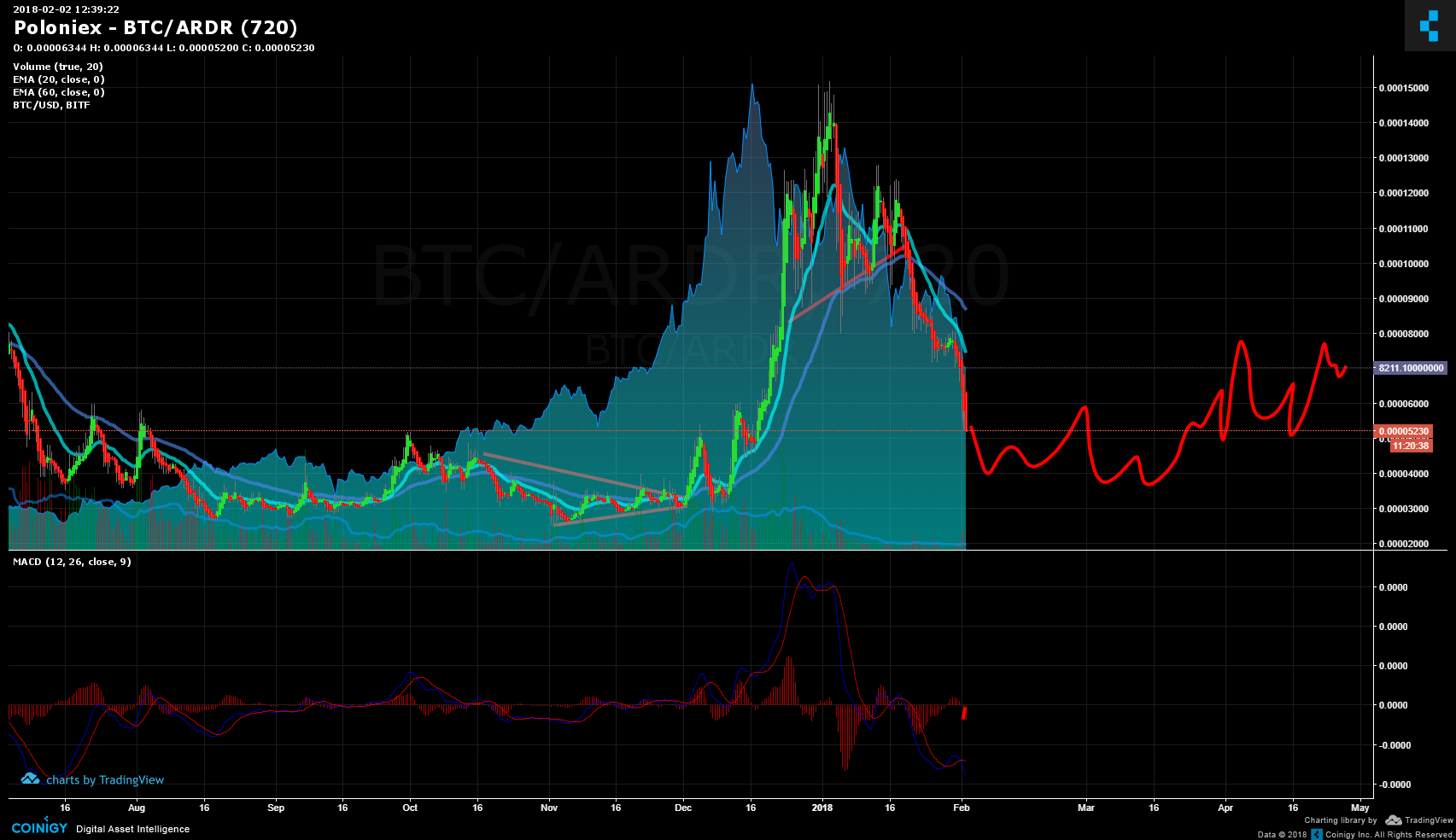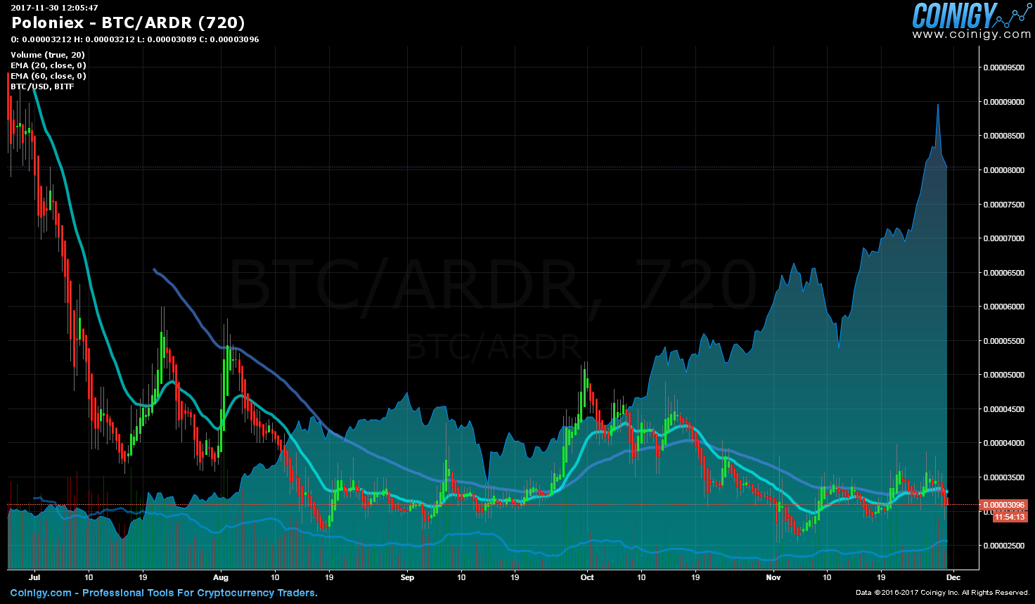 late august 2017 new lows, a consolidation in ARDR prices at historical levels at the same time bitcoin was making a potential top formation - anticipation was strong for a return of the bull - that did not come for several months