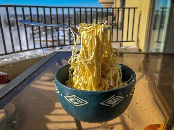 Love this pic of spaghetti suspended in the cold of the US in Chicago!