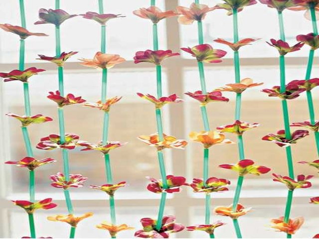 For those of you who have a house with many windows, this one idea can be tried. Yes, you can make your window looks beauty with a flower curtain that made from a straw. With colorful straws arranged neatly and flower ornaments will make you more comfortable living at home.