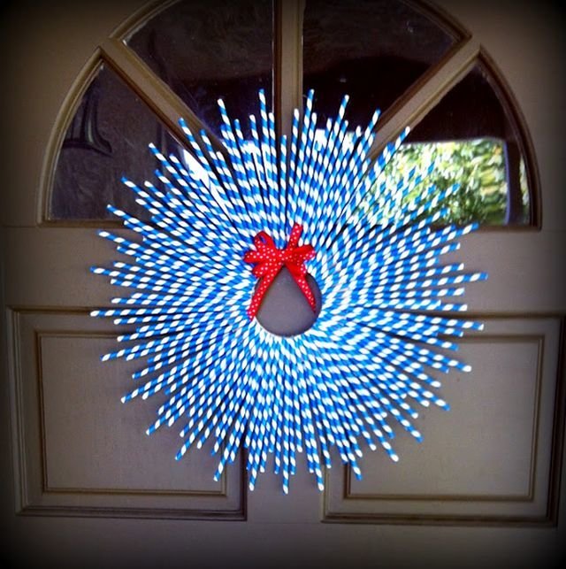 By using a combination of straws with 2 different colors, you can make a cool decoration like the one in the picture above. Well to look more beautiful, don't forget to add a color ribbon. Not only on the wall you know, this decoration is also suitable hanging in front of the door.