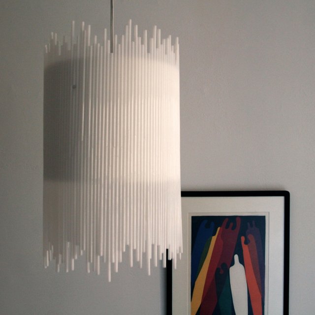 If you want the look of your house the more interesting the chandelier can be an option to light up the room. But most of the chandeliers on the market are monotonous. With a little creativity you can make an ordinary chandelier more interesting. How? You just use white and translucent straws then paste one by one until a unique lamp shade is created just like the one in the picture.