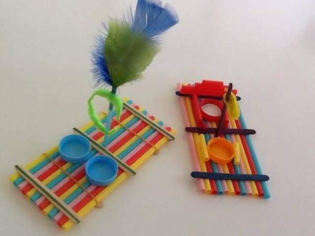 The variations of toys from straws really a lot. One of them is a raft boat like the one in the picture above.