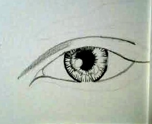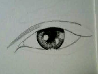 6. The goal of creating a good eye is first and foremost to have your proportions correct, and to create a lot of contrast between values. You want to have dark shadows and near white highlights. The highlights represent moisture. This is the finished eye: