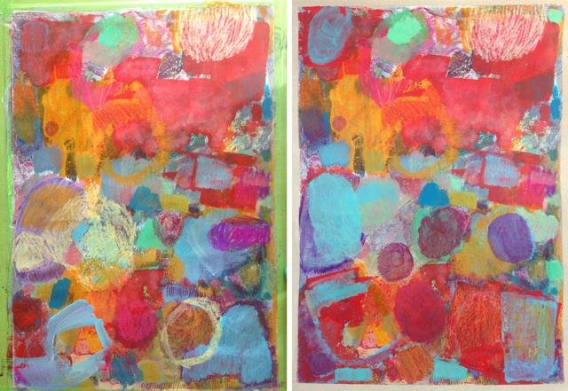 Last summer I made a series of small paintings, acrylic and oil pastel on paper. I named this series: '39°C in the shade'