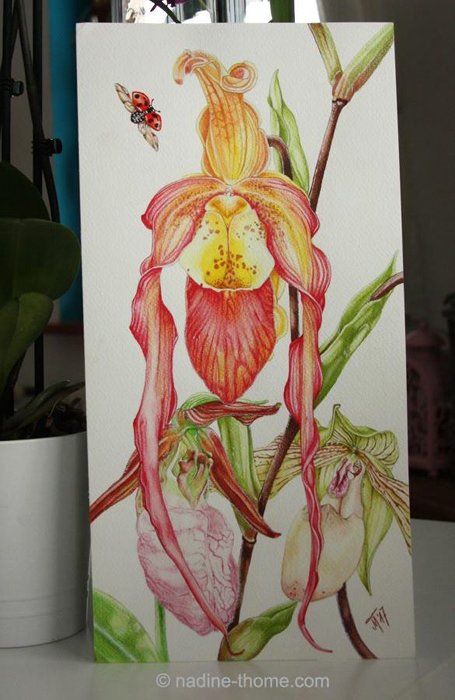 And I especially love Ladyslipper orchids. Unfortunately I don't own any, because these don't really grow here and it would be sad if they'd die... maybe that is why I paint these often. To get some of them into my house anyway.