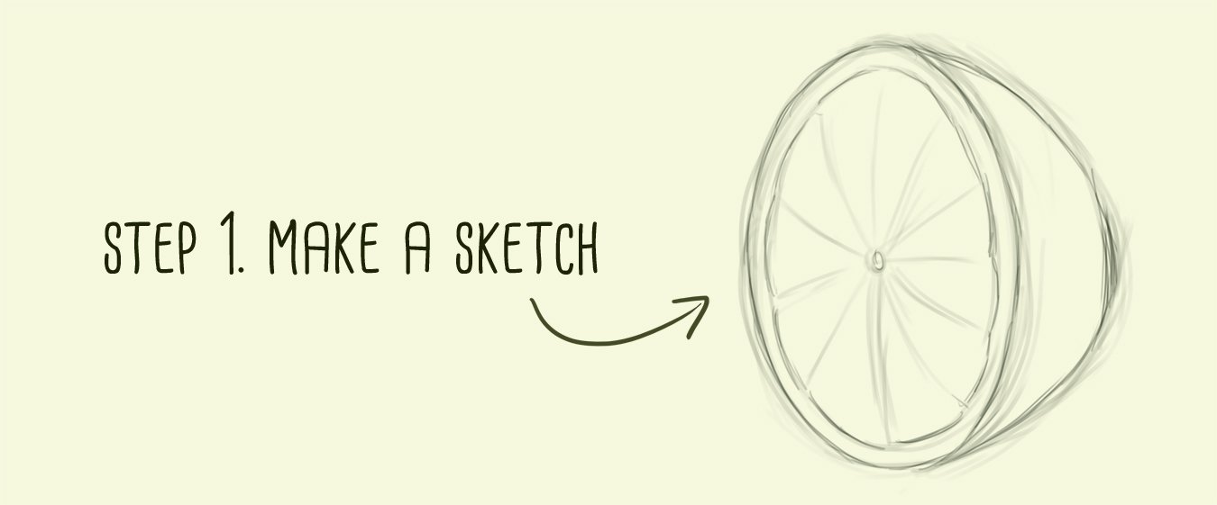 Start out by making a loose sketch. Use a reference photo or a real lime, look at the basic shape of the lime. You probably see circles there! Remember, the sketch doesn't need to be neat and tidy, it's just a base for your painting.
