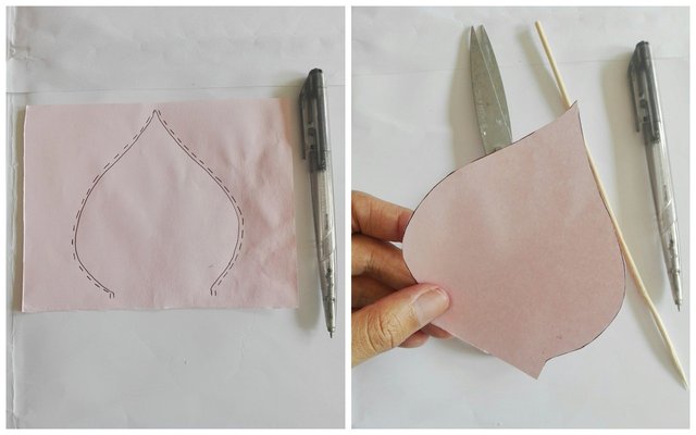On each pink sheet of paper, draw and cut out a pattern like the one above.