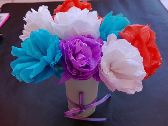 Hello, Steemers! This is my own version of making a bouquet of flowers. Colorful flowers made out of crepe paper 🌸