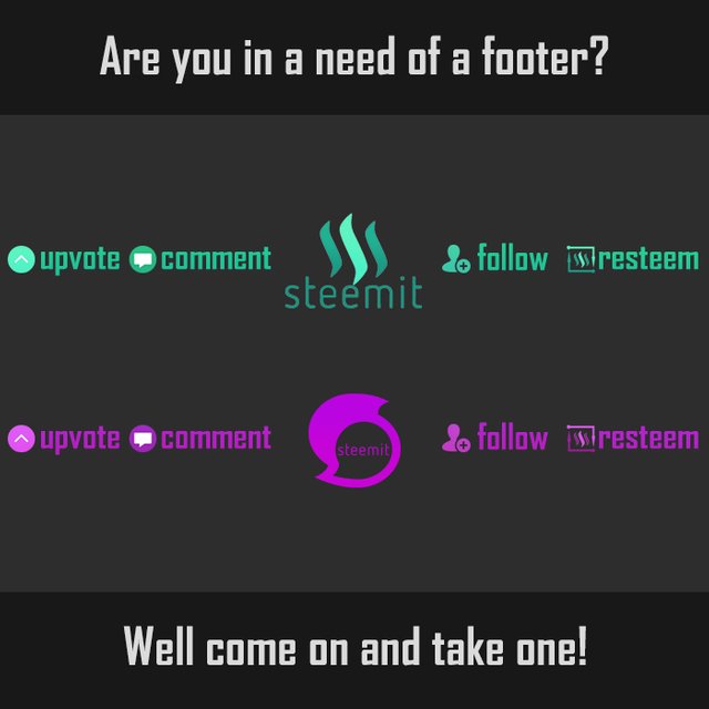 So what's a footer good for? Well for starters it's an simple,clean and an amazing way to finish your posts. Secondly but more imporantly if your readers go through your post and they like what you made there's a subtle and acceptable reminder to upvote or follow you , and also resteem if they thought it was freaking awesome and they need to share it with everybody.