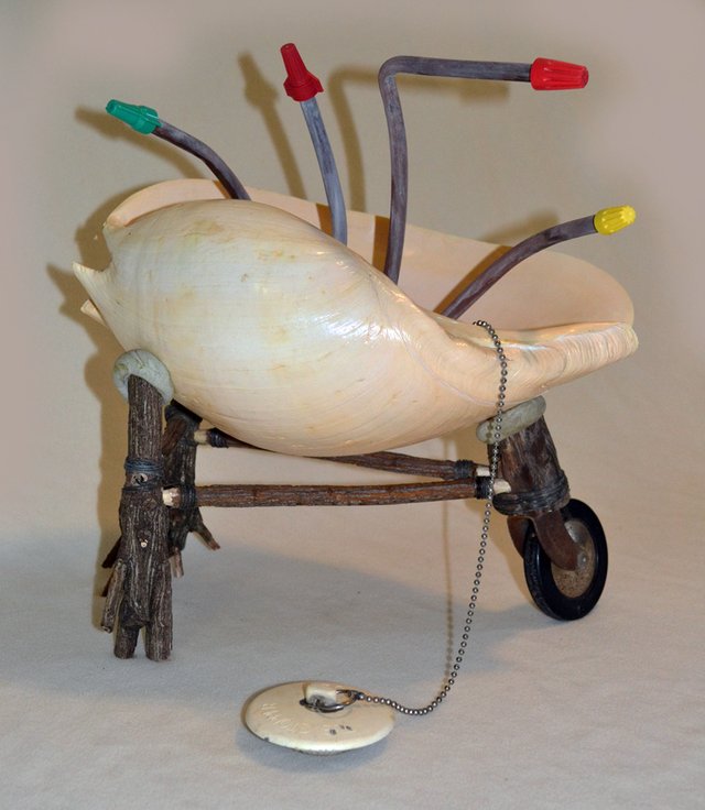 This object or sculpture is one of many I have made for this series. As all the other objects it looks to have a definite purpose; although one would be hard pressed to define it. My intention is to let the viewer to use their imagination. Not everyone will come to the same conclusion as to what it is, but that makes it fun.