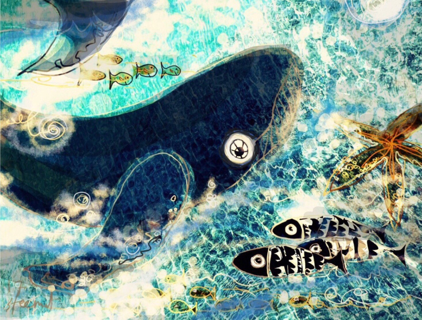 Wonderful picture! I especially like the blue whale, very cute! :)
