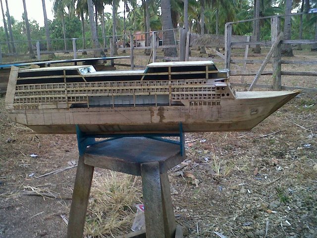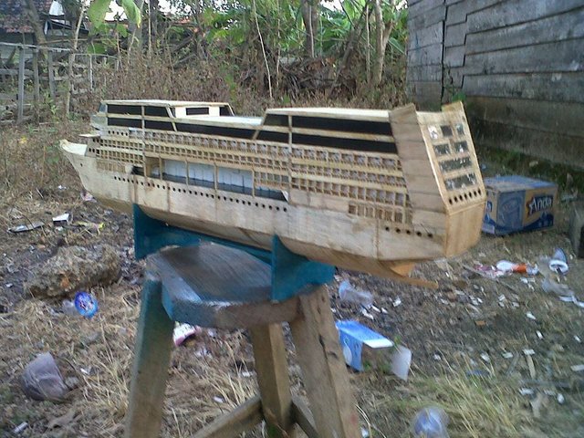 Make a miniature ship, using wooden base material, in this miniature manufacture I spent about 2 weeks, 2 weeks including from basic material search and completion. very time-consuming, different from the miniature ship that I usually make.