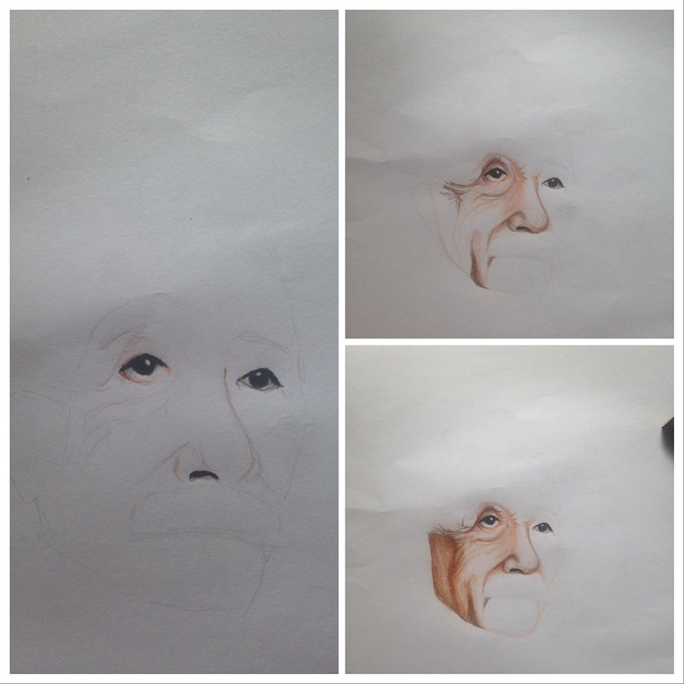 Then I colored the left cheek and his mustache, then his forehead and then his ear.