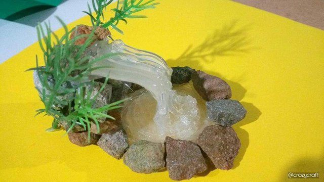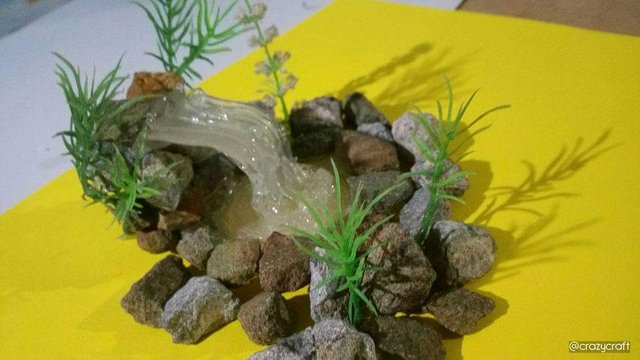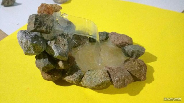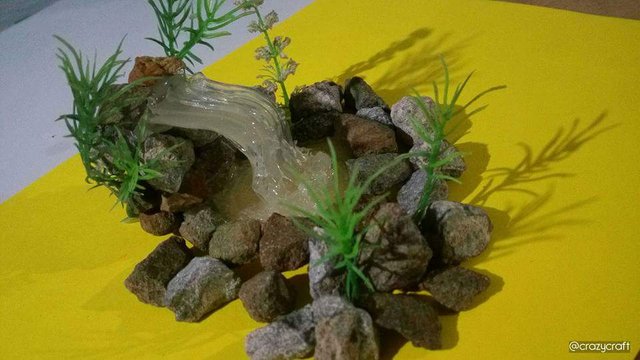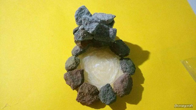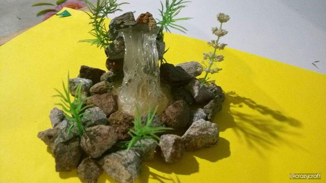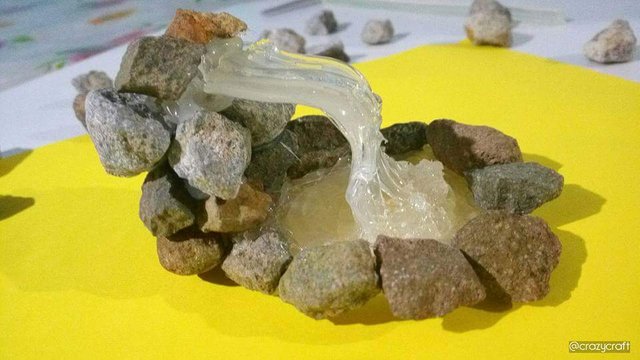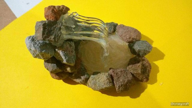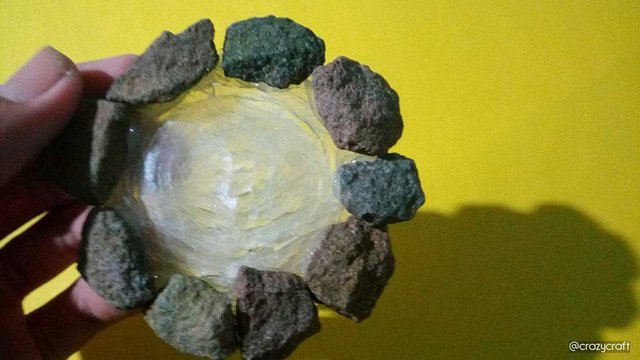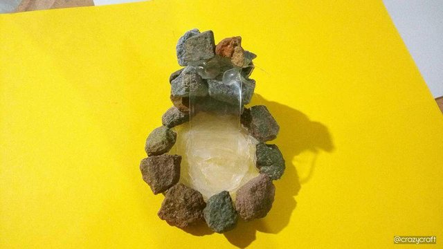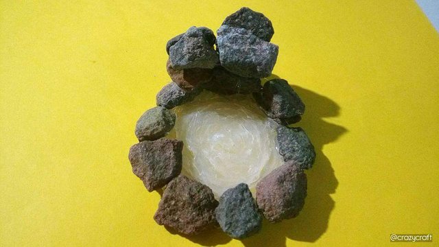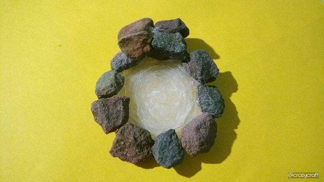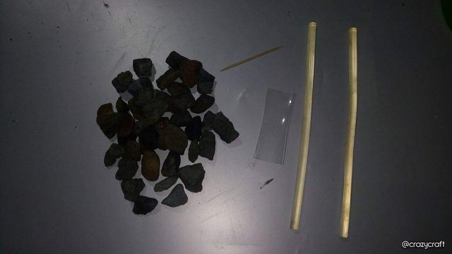 I used. stones, glue, toothpick, a piece of plastic bottle.