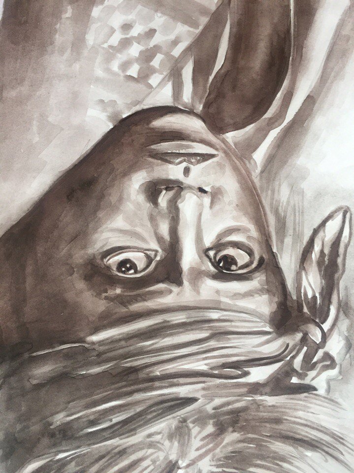 It took me about 3 hours to create this portrait. Drawing in watercolor is much farther than pencils. I love colors. Any colors.