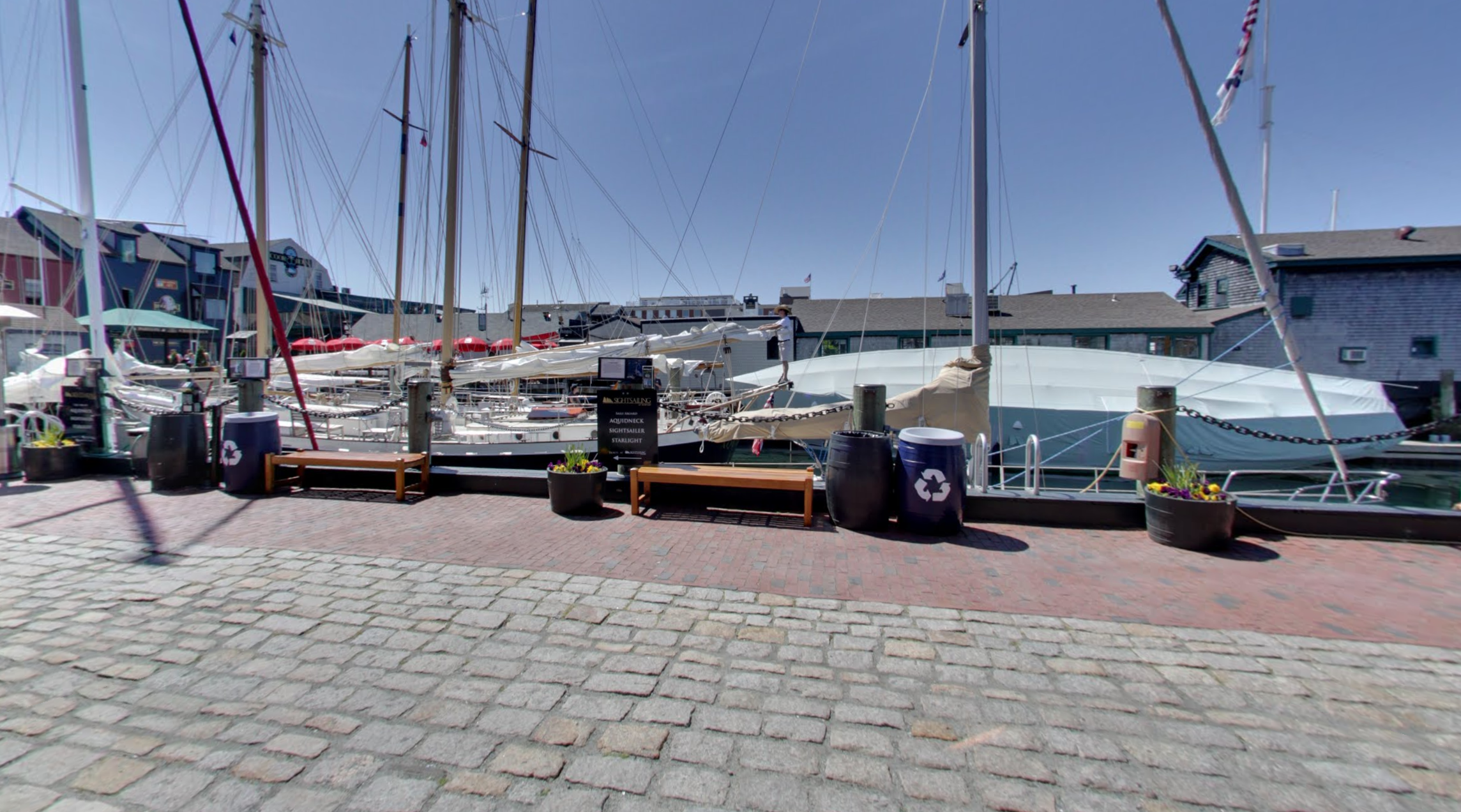 I went down to the wharf at 9am on a Saturday, just before tourists started to show up. I walked around for 5 or 10 minutes until I found the view that I wanted to sketch. I was out on the pier looking back towards the town, sitting right next to a sailboat. I sat right on this bench by the water.