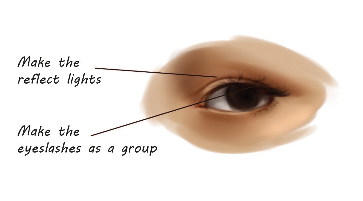 -Don't forget to respect the reflected lights. The eye shows a little reflected light where the depth of the eye socket is.