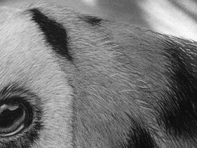 Today i was still drawing the face, and than i started ears finally. I cant believe that i have been working on this for a week now. Also big thank you to all my followers and to everybody who was following all those parts, how the drawing developed from the very basic sketch i posted in Part 1.
