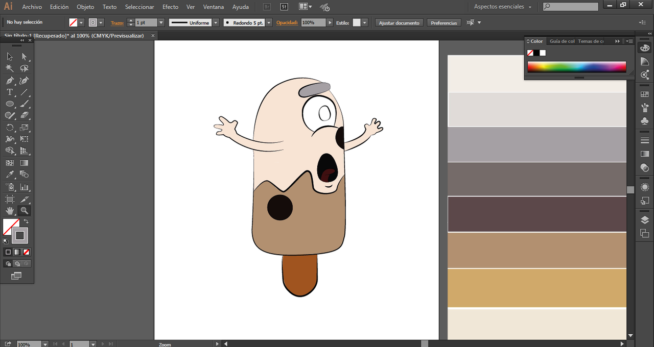 Y para colorear creamos una capa nueva, justo debajo de las lineas que realizamos, este proceso es el mas tedioso, yo utilizo el pincel y la herramienta de pluma pero con relleno para que de esta forma pueda quedar mas exacto. Utilice una paleta de colores beige para colorear mi dibujo.