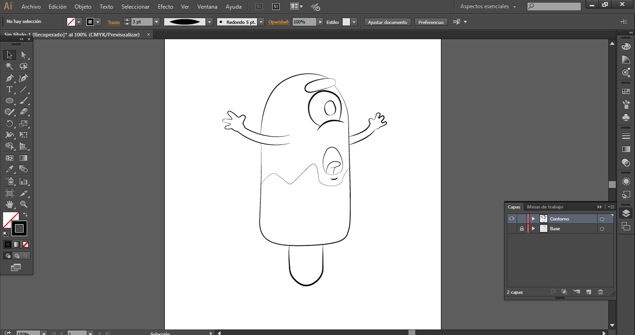 Mi estilo para los dibujos siempre ha sido de "cartoons", pues siento que es lo que mejor se me da por el momento, entonces me pareció perfecto para este post una pequeña caricatura de una paleta de helado, pues es "sencillo" para empezar a aprender. Si simplemente quieres aprender, puedes googlear alguna imagen para colorear y utilizarlas para practicar (mas adelante entenderás como)