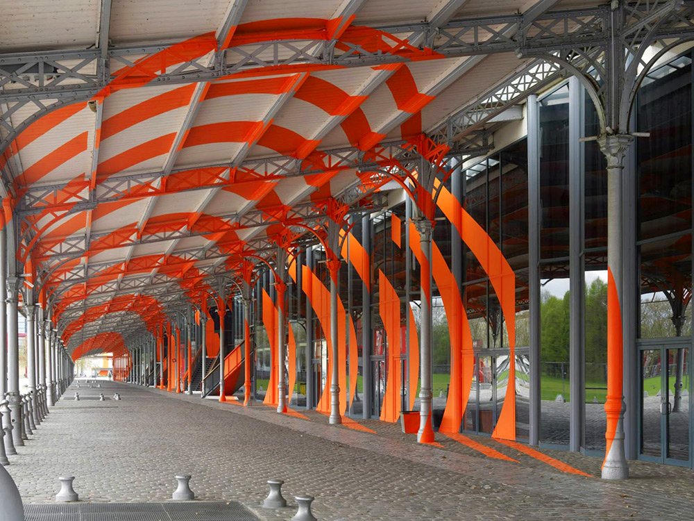 I first tested out this concept of favored perspectives in a video project in 2010 (above). From the vantage point at the beginning of the video, one is made to believe that the path is completely blocked by a large black wall. Only after one begins moving and breaks the initial perspective does one realize that the black wall is in fact many smaller pieces that can be easily traversed. This same concept is also well-explored by the work of artist Felice Varini. As seen below, he paints complex surfaces with simple geometries that only align from one very specific vantage point.