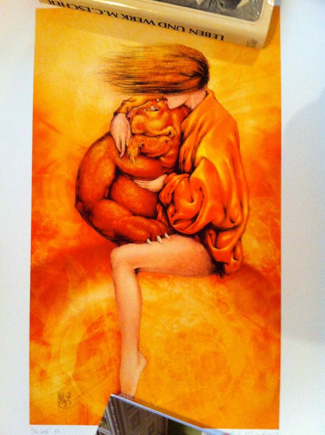 Now: I have to find an appropriate frame for my first ever purchased peace of art directly from the artist himself! That has to be done also carefully, I wish I would have asked him to mount it on a frame and we should have risen the price. LOL. It is again my impatience because I do really want to put my beasty woman on the wall.