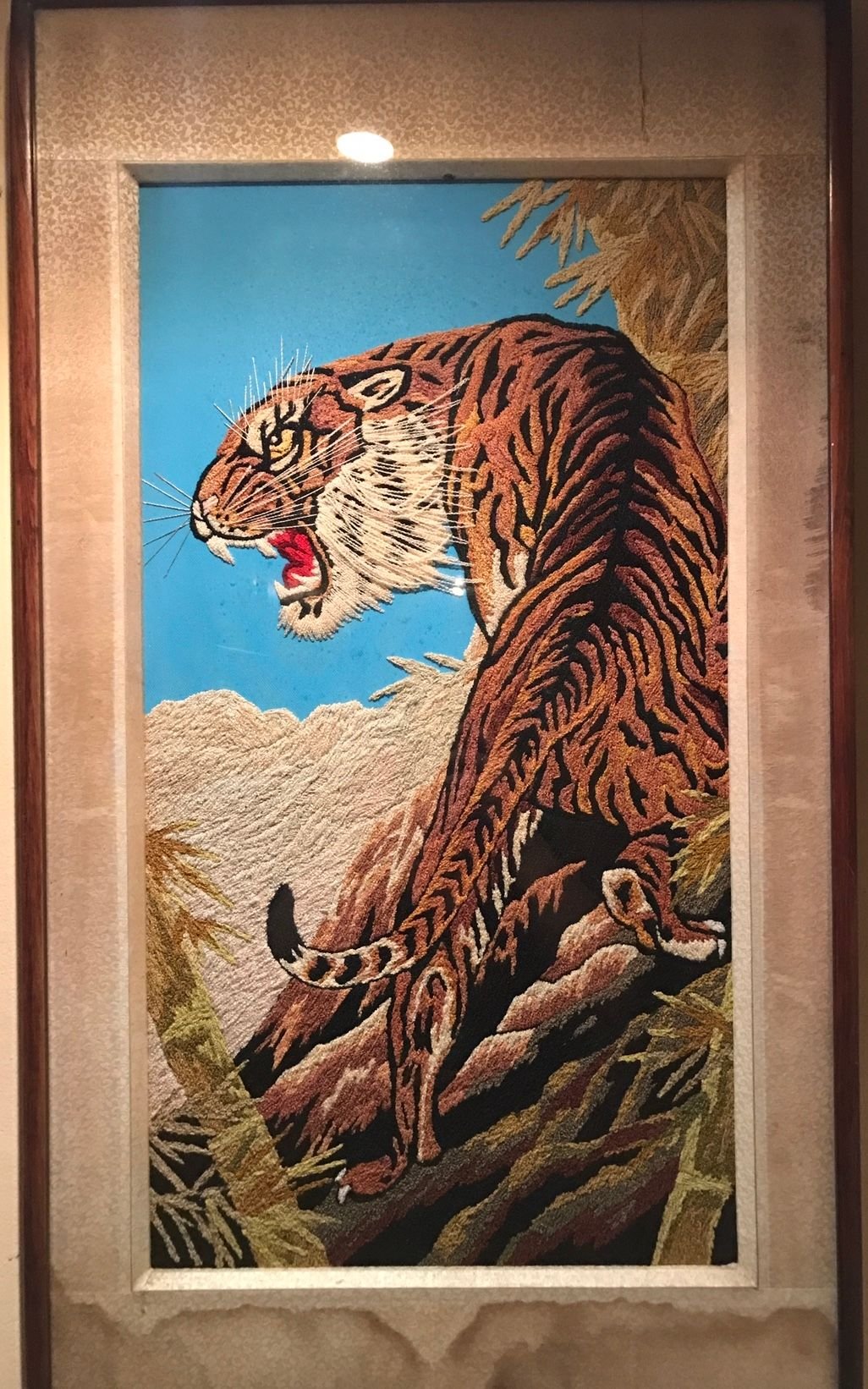 This Tiger painting was inspired by my Mother’s 40 year old stiched art. It still intact in our home, and this brings alot of memories of my childhood.