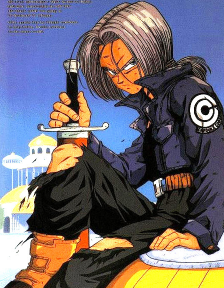 La imagen más típica de Mirai Trunks, después de entrenar por un año.