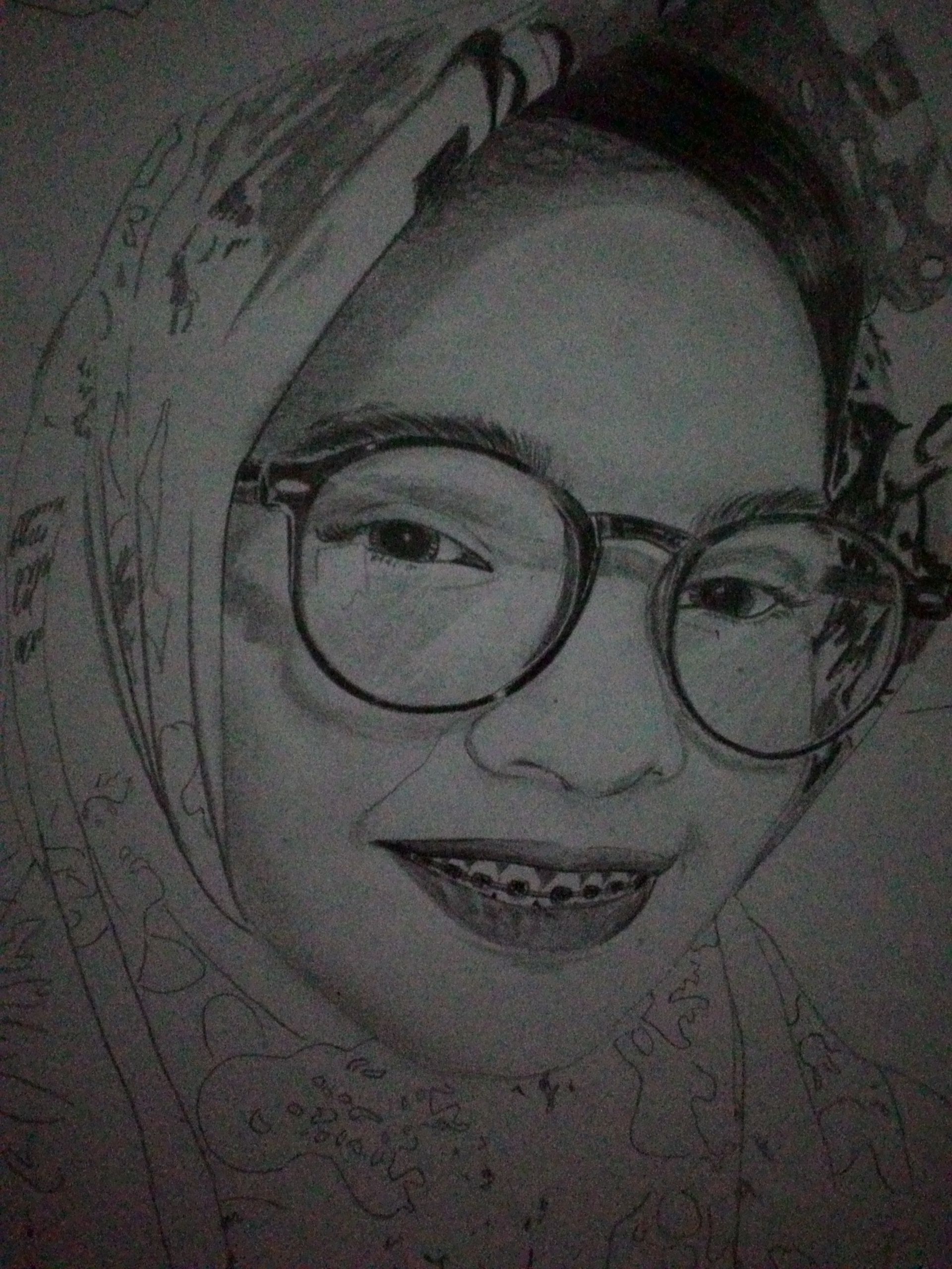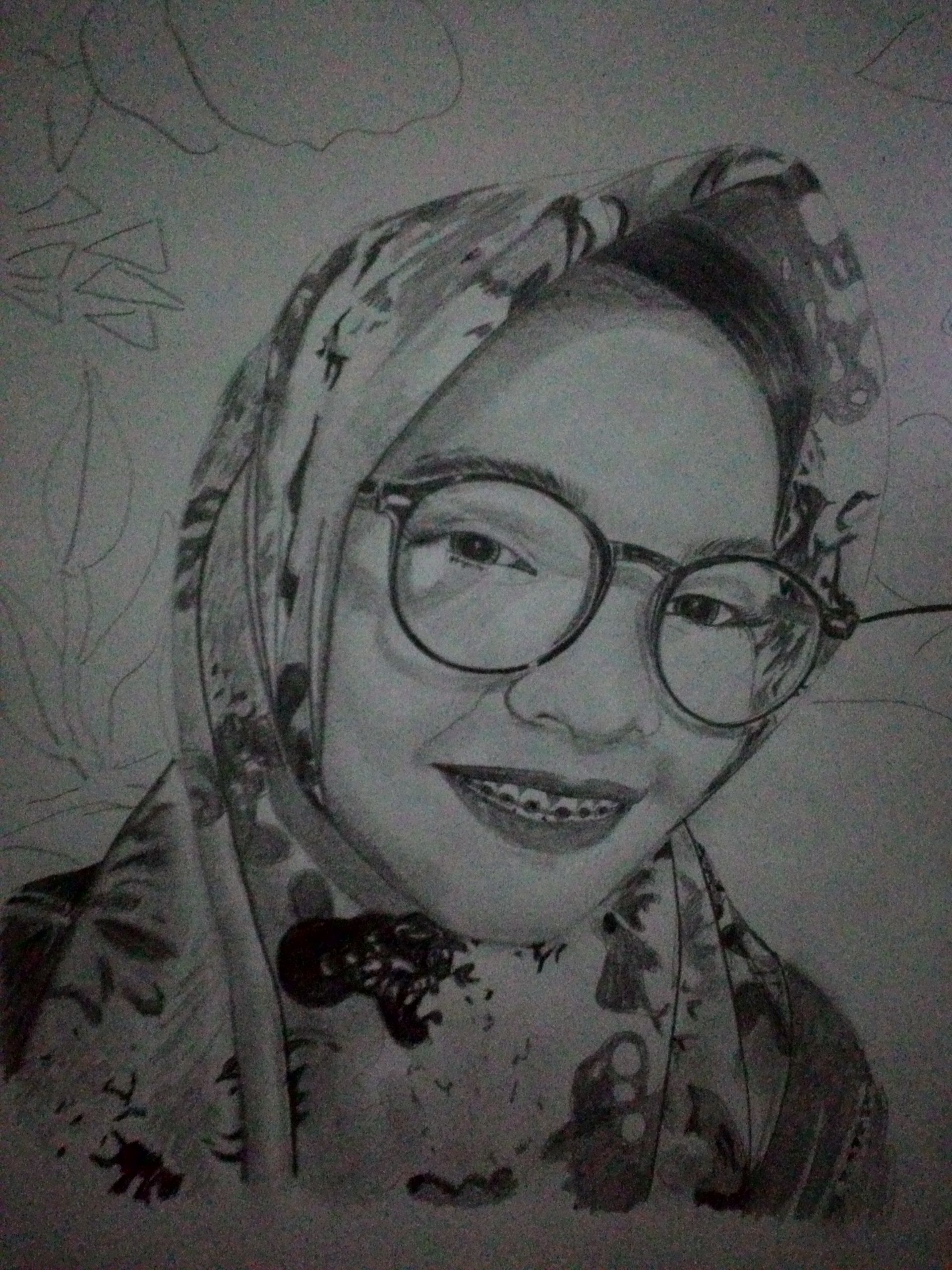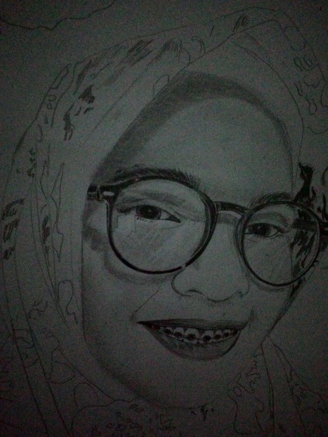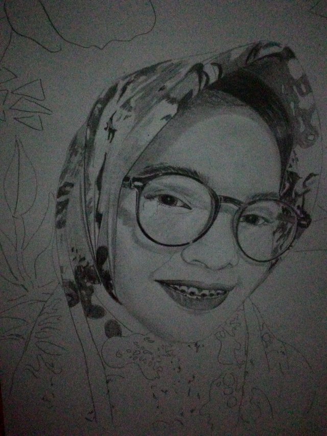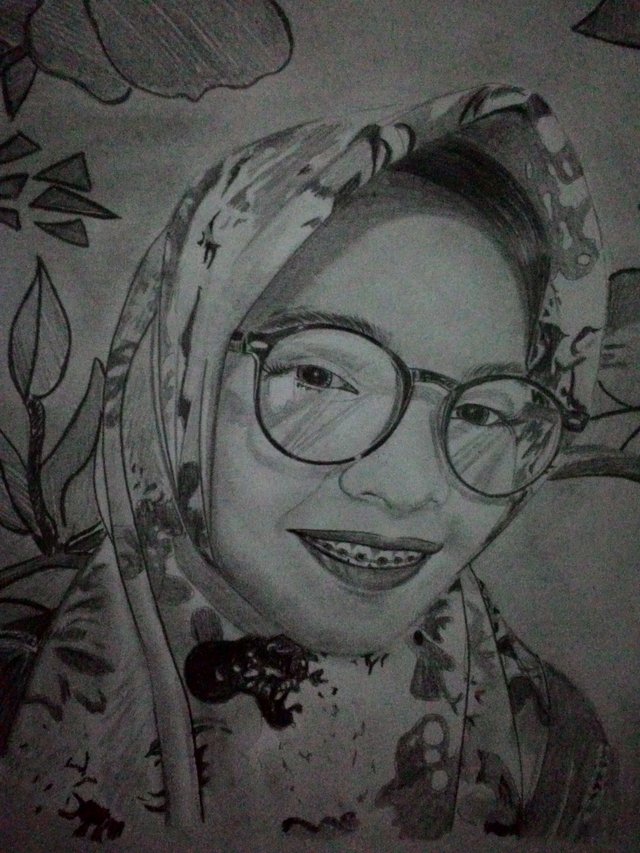 Then I made a hijab motif, and the background was as low as possible with 5B and 8B pencils