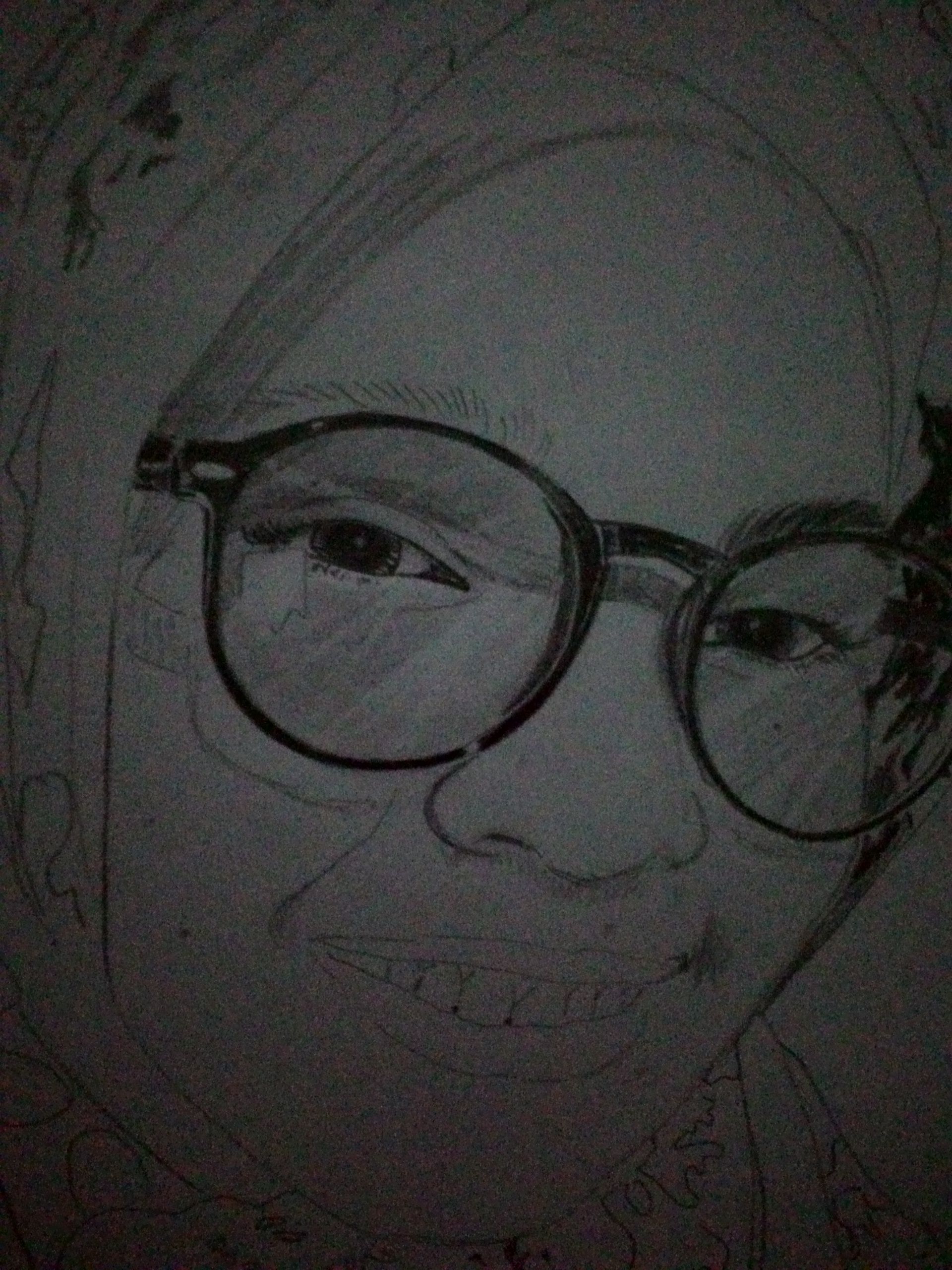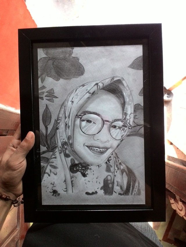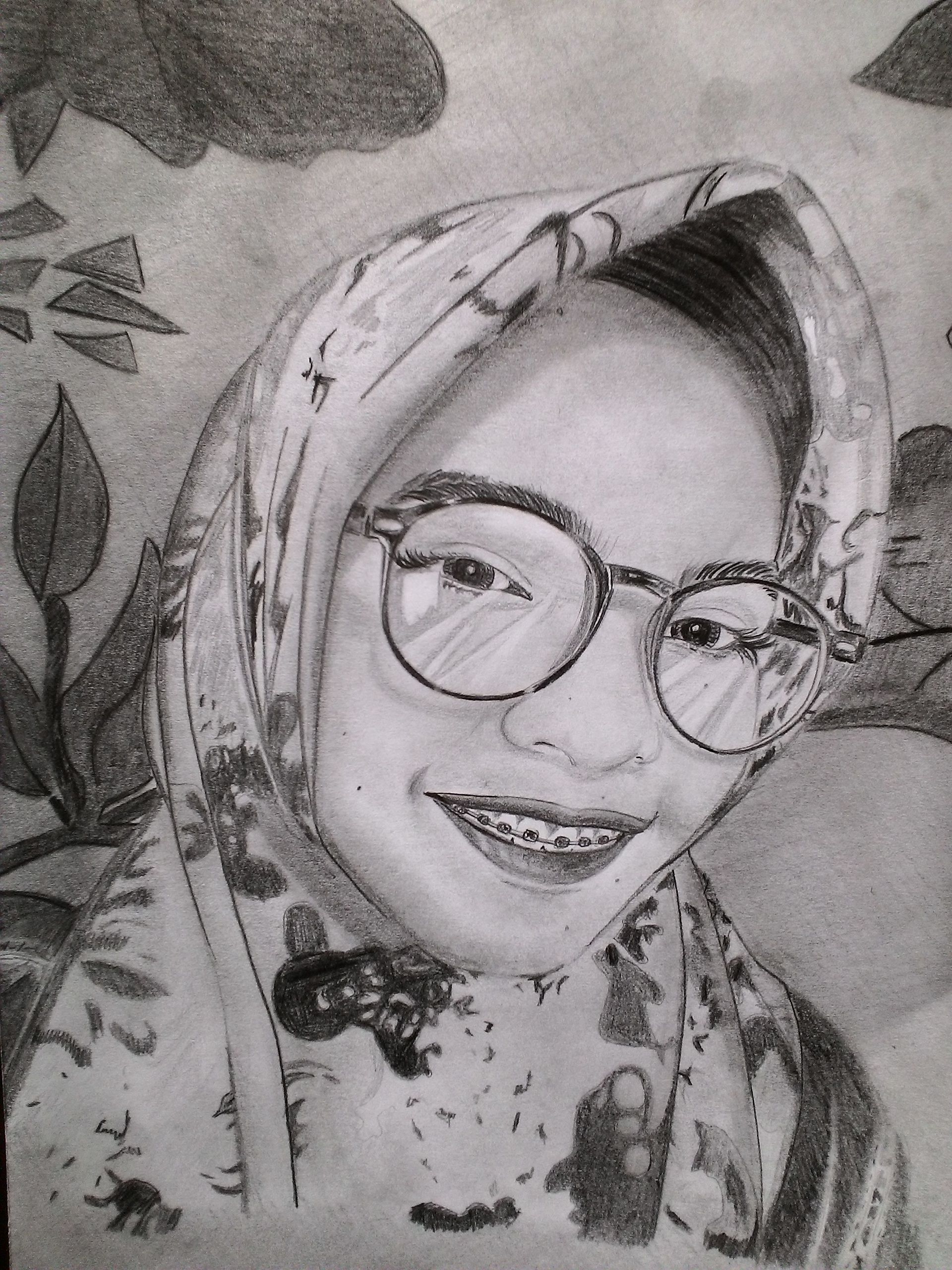 Then I made a hijab motif, and the background was as low as possible with 5B and 8B pencils