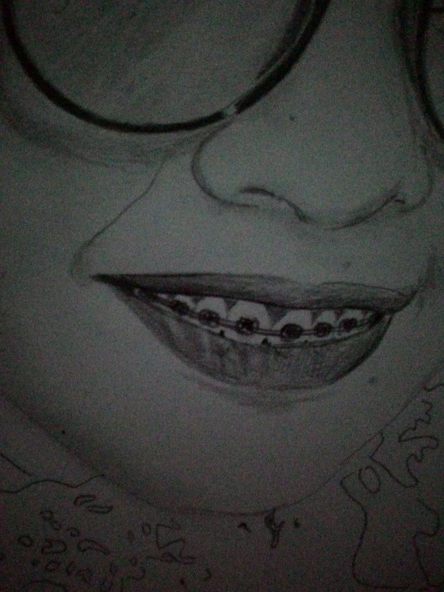 Continue, in this step I focus with hair, I thicken the hair with a pointed 8B pencil tip