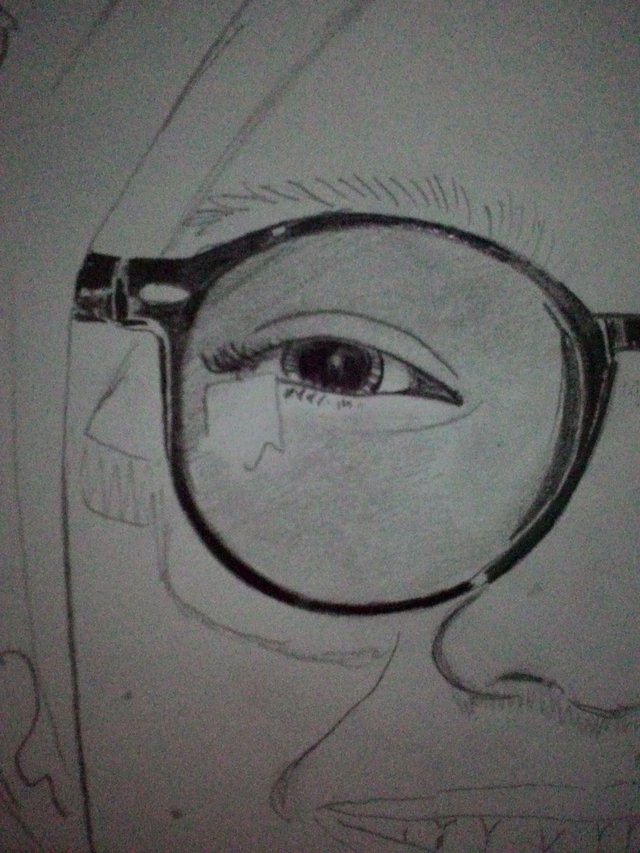 I made the eyeglass effect with a pencil, then I removed it with a tapered eraser