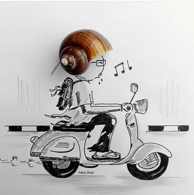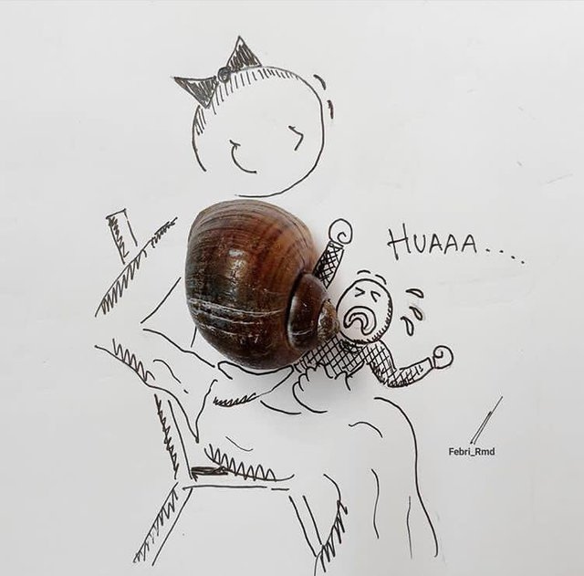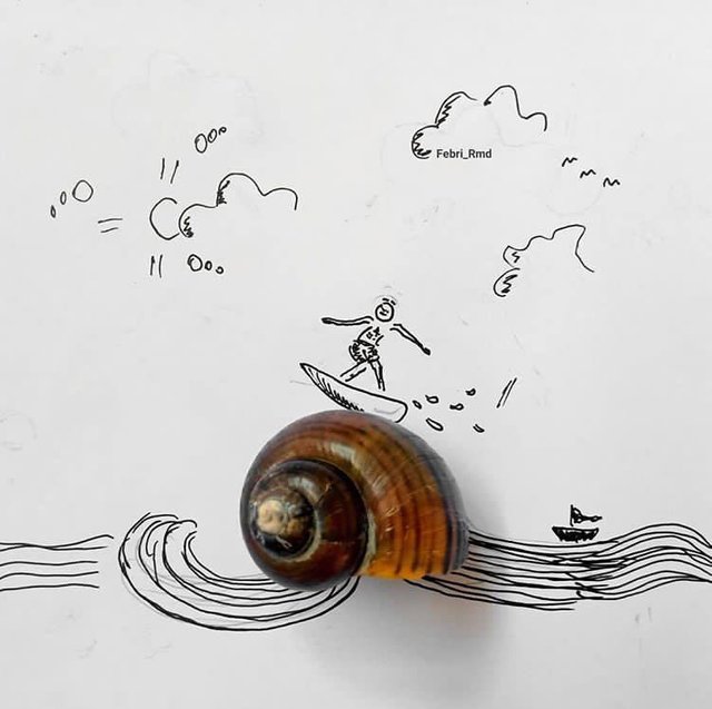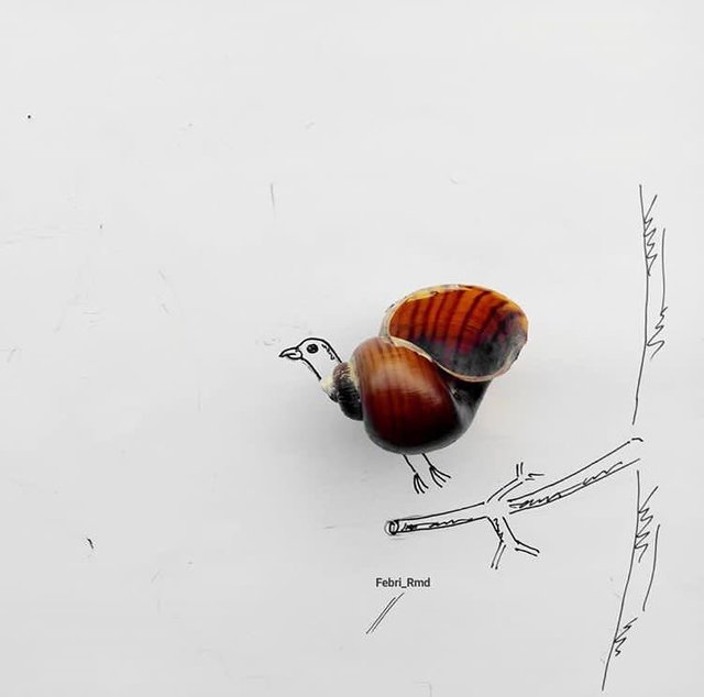 Very creative @febriyrmd! Love the use of an ordinary object, in this case a rice conch shell, with your drawings. This is truly an original use of 2 different mediums.