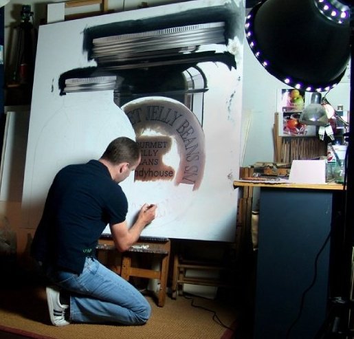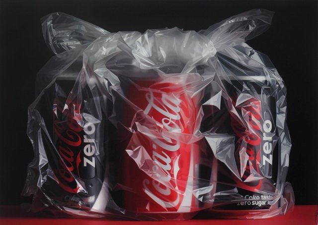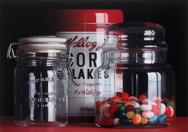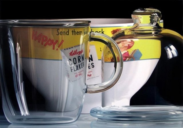 This painter has based his works on objects of daily life such as aluminum cans, fruits, glass containers, and the detail is surprising in terms of texture and use of light is concerned. Needless to say, his art is confused with real photographs.