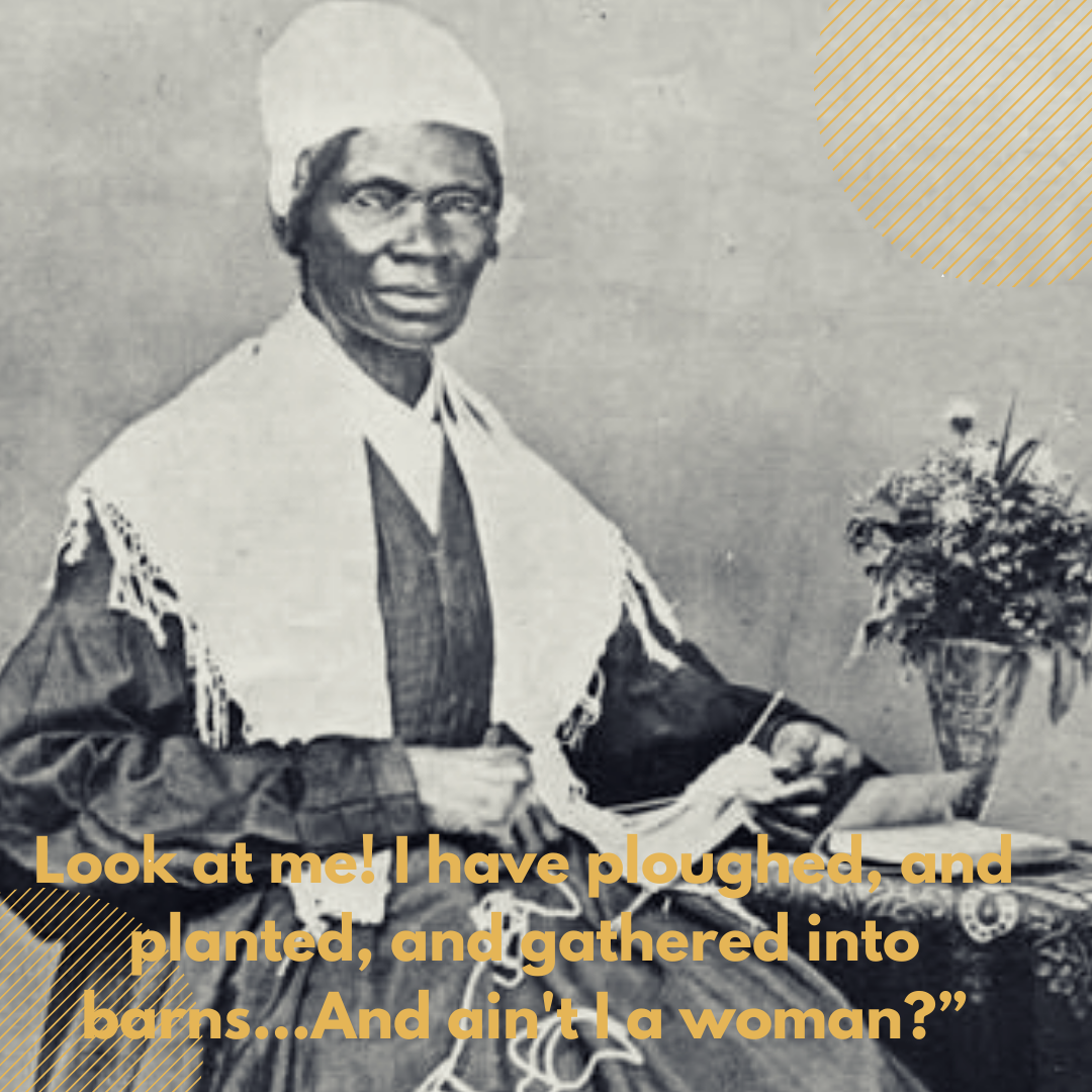 Simple ex-slave woman, Sojourner Truth, an abolitionist and activist, stood on a platform at the Ohio Women's Rights Convention to give the feminist anthem,