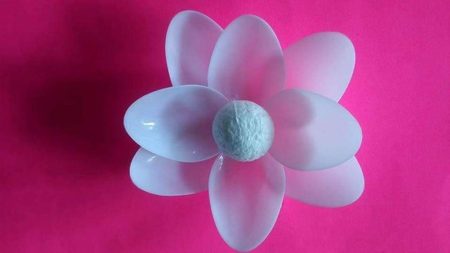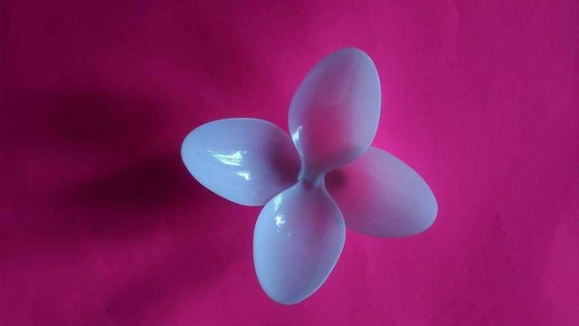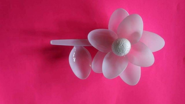 The first step is i break the spoon head from its handle and form a flower from it
