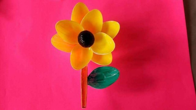 Just secure it with hot melt glue, on this part i used poster color i paint the leaf with green first amd yellow on its petals and black at the center