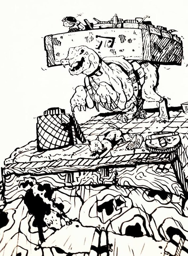 Time lapse video of me drawing this dinosaur riding a pair of turtles from my imagination