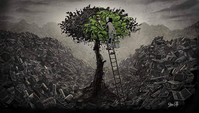 Steven Cutts, ilustrador contemporáneo, satírico, grotesco, sus obras animadas con carácter de crítica y protesta, acusan la sociedad actual, la era de consumismo y engaño que te esclaviza por excesos innecesarios tras la percepción de un osado artista en contra de las tendencias...