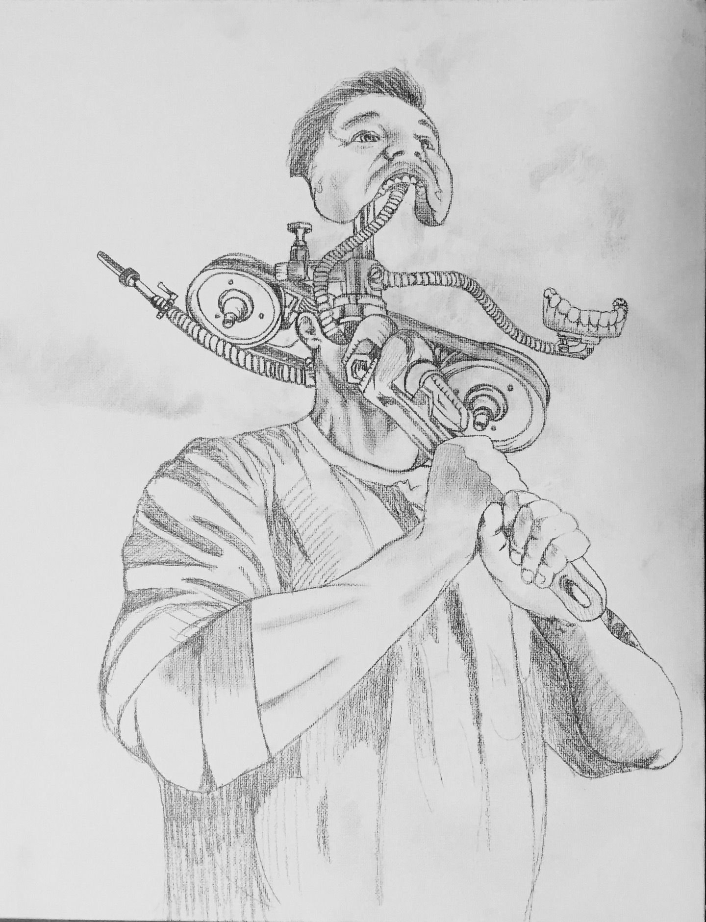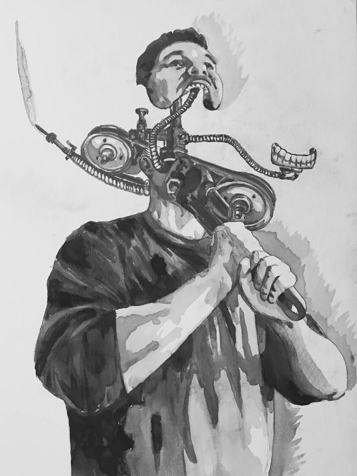 I started with a pencil sketch then threw some black watercolor on top. I like when the water mixes with the pencil, you can get some real dark darks and good solid line work.