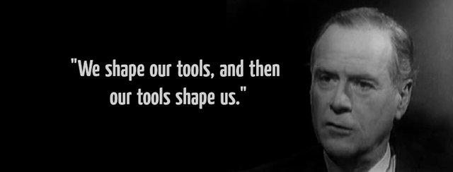 McLuhan coins the phrase “The Medium is the Message,” arguing that the way in which information is conveyed to us as a society (not just the content itself) significantly affects us, our behavior, and our relationships. For example with television, the “medium” indirectly coerces us to sit in front of this device and passively receive the content given without any way in which to interact with that content (in stark contrast with the internet today). Social media on smartphones is the most recent embodiment of this as our human interactions are highly distorted due to the nature of systems such as Facebook or Twitter.