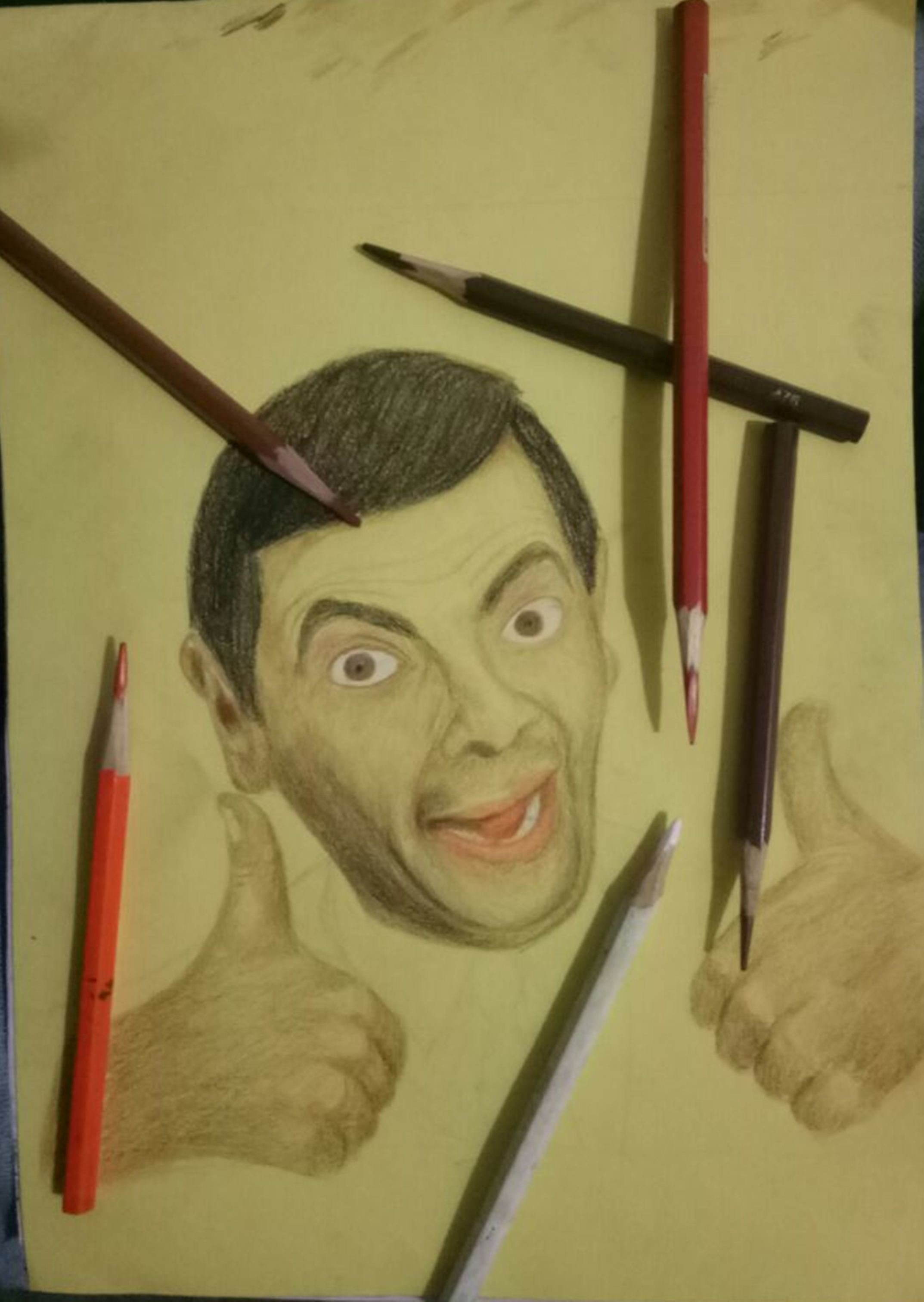 Jenny's Art Contest Week #11-Mixed Media On Yellow Paper (Mr. Bean)
