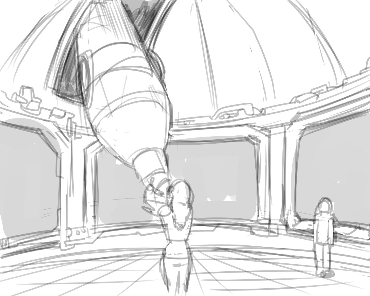 I'm working on the exterior concept art now. Very exciting stuff. Take a look below at the design process. You can see every step from early sketches to final illustration. I'm actually still using Firealpaca as I lost my Manga Studio program. It really does the job nicely and will work fine until I upgrade.