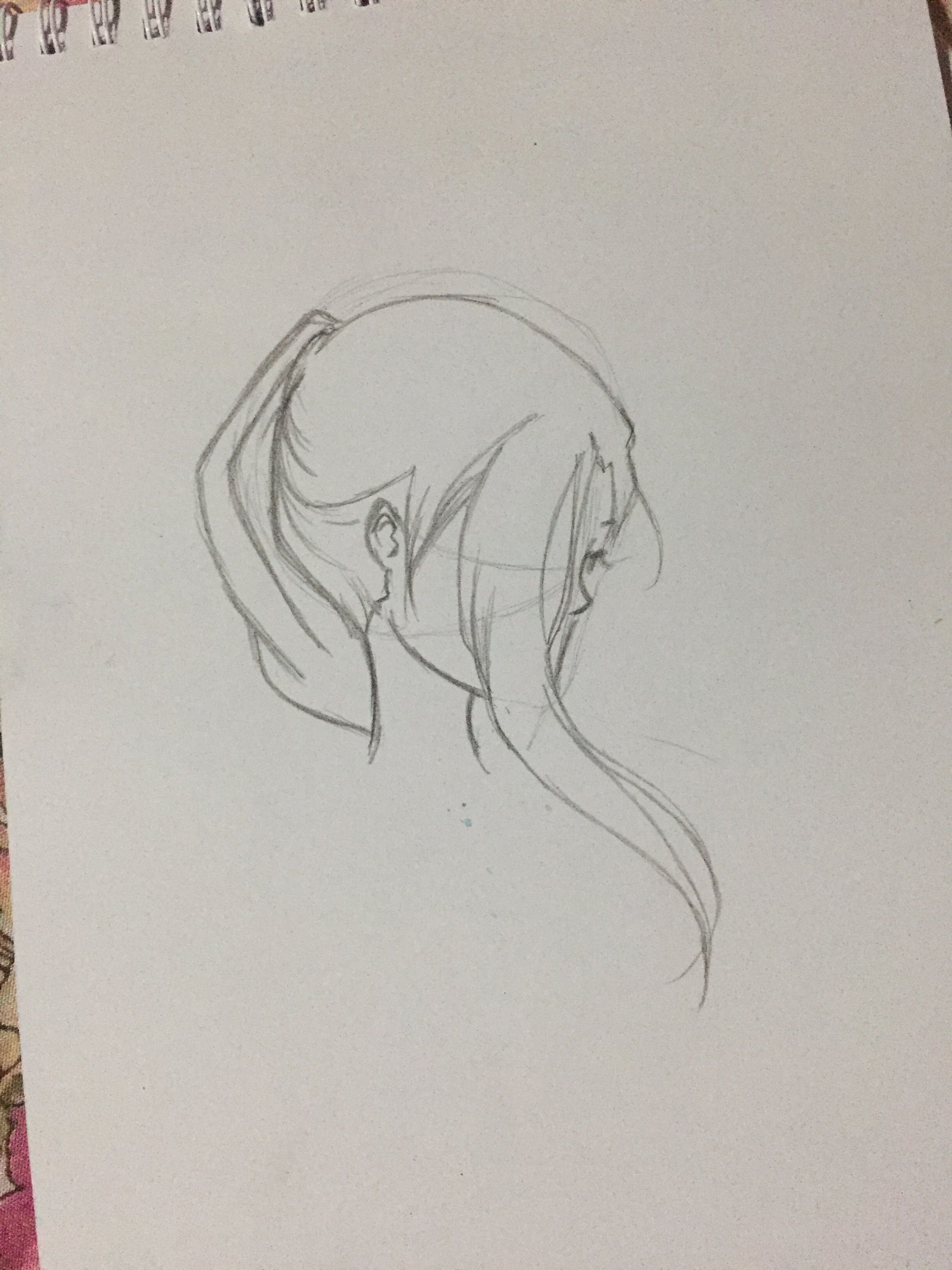 3.The circle you made, that’s the pattern of the head. You can follow the circle for shaping the head. Add some details for head hair, and draw the ponytail, just draw the hair until the neck.