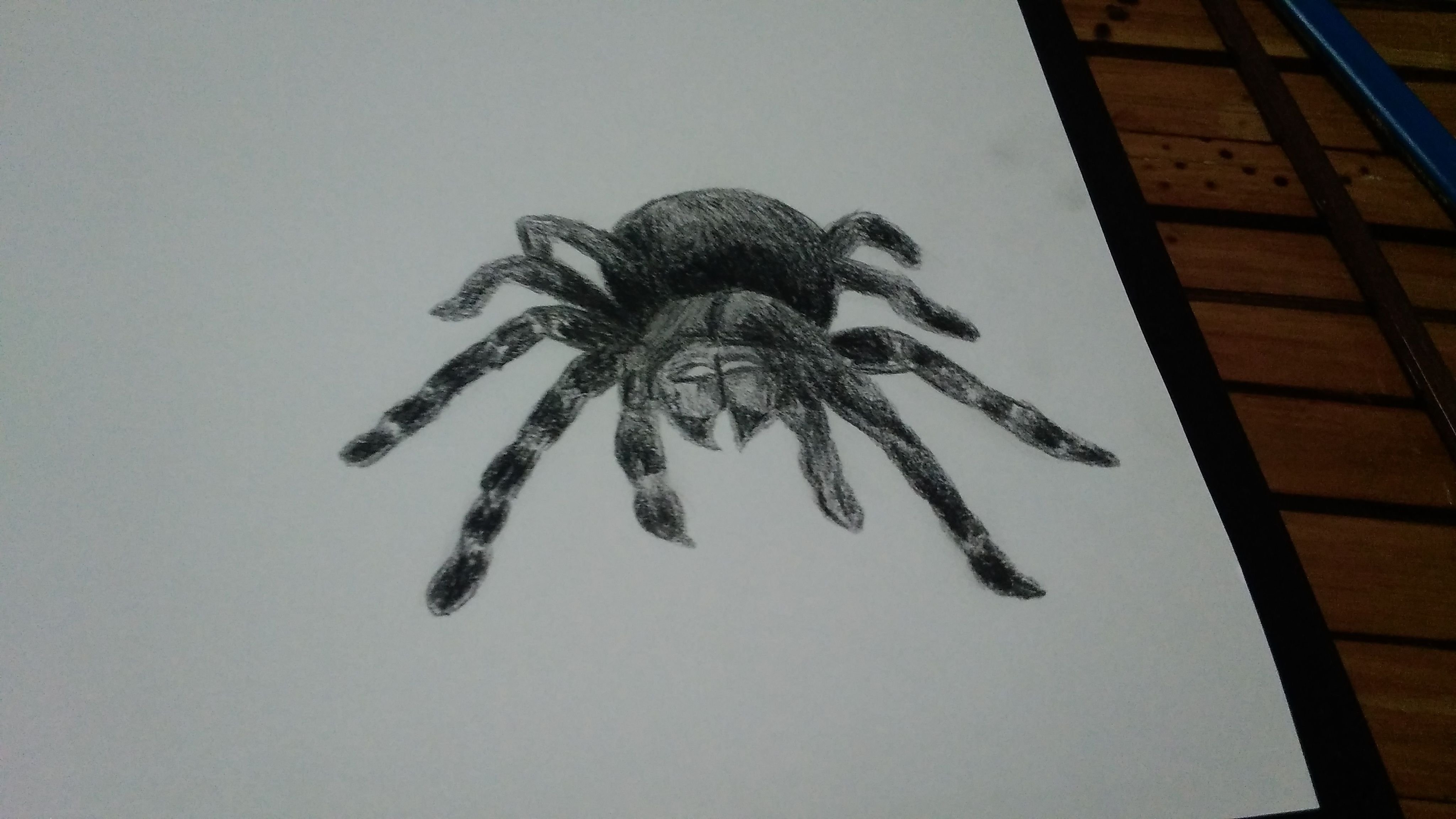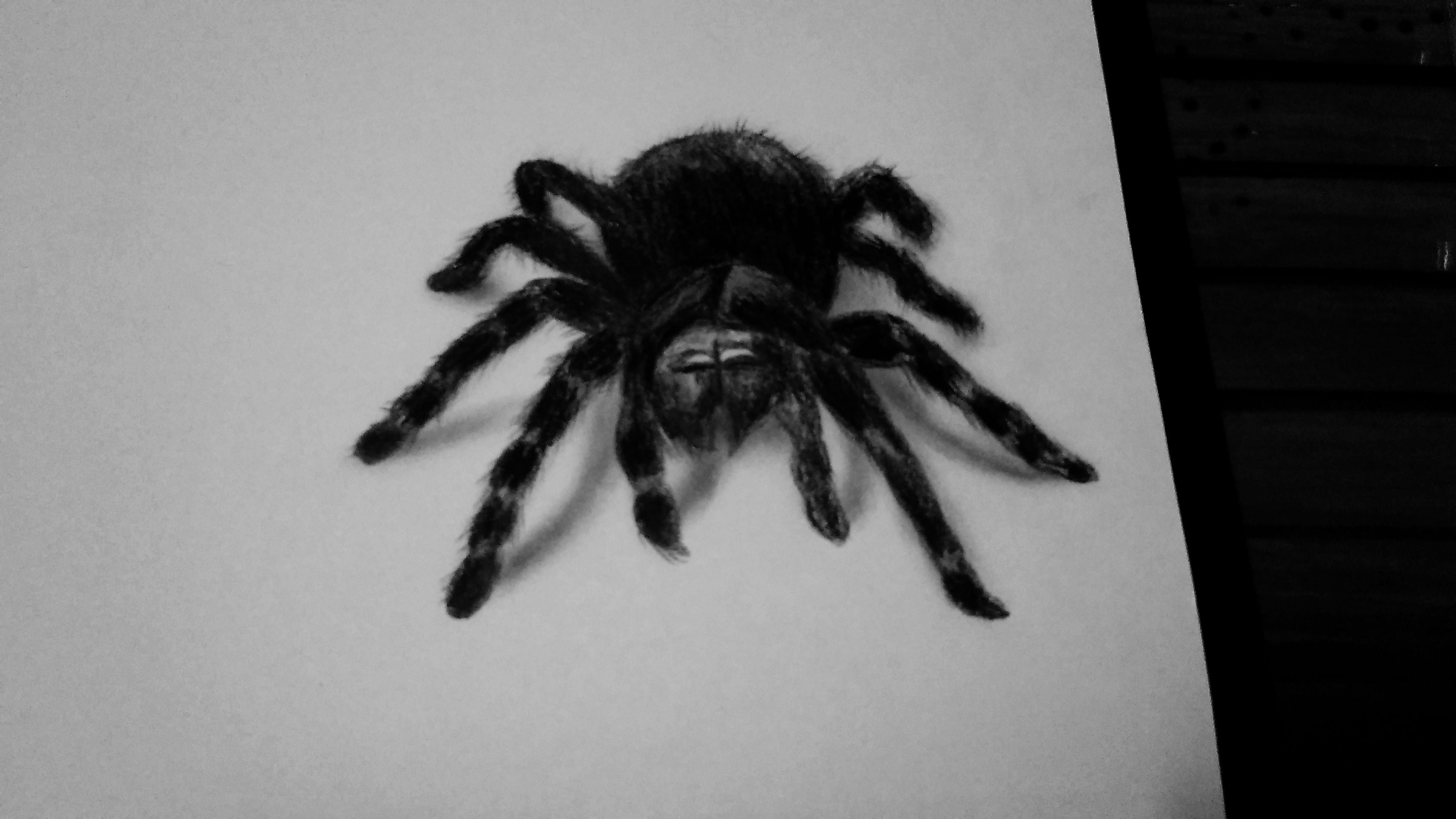 Here, I began to draw the Tarantula with a graphite pencil. I have darkened it as I saw in the reference.
