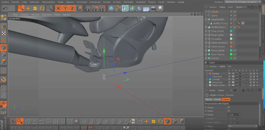 Tenth part of the tutorial, today we design the exhaust pipe with its great details and to achieve this we will use the "spline of travel" technique, interesting and extremely useful, we will give it the desired shape by modifying the points with scaling and rotation.