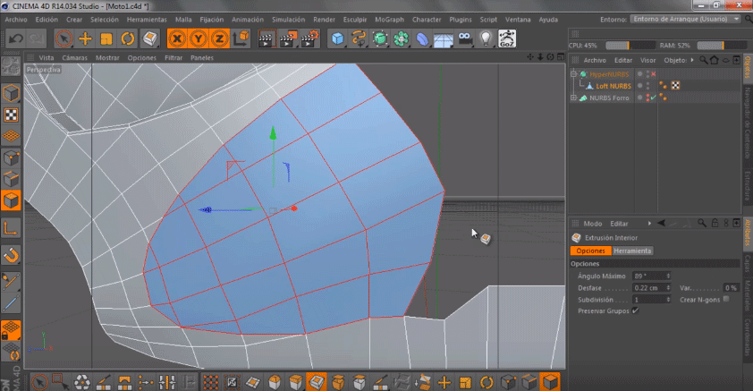 Como pudimos observar en la segunda entrega del presente tutorial, nos apoyamos en diferentes herramientas para poder realizar tareas específicas, en esta ocasión continuaremos utilizando la extrusión de aristas para ampliar el carenado y poder obtener la forma deseada: